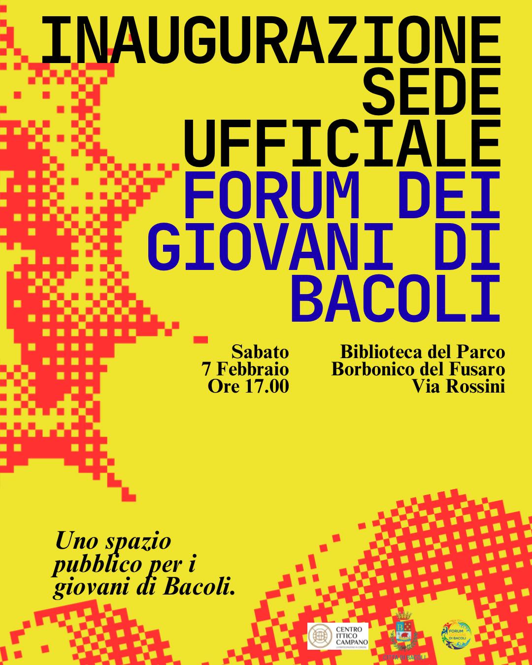 Siamo felici di invitarti all’inaugurazione della sede ufficiale del Forum dei Giovani di Bacoli: un nuovo spazio pubblico pensato per ascolto, partecipazione e iniziative dedicate alle nuove generazioni.