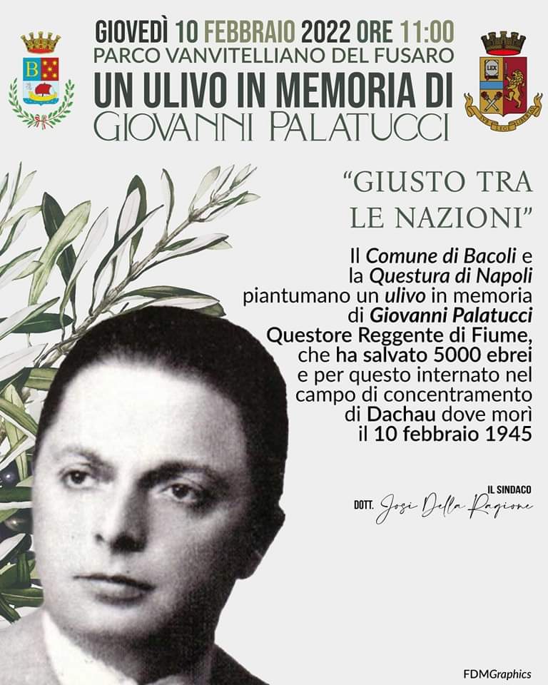il Comune di Bacoli e la Questura di Napoli piantumano un ulivo in memoria di Giovanni Palatucci Questore Reggente di Fiume, che ha salvato 5000 ebrei e per questo internato nel campo di concentramento di Dachau dove morì il 10 Febbraio 1945.